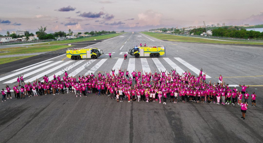 Simpson Bay, St. Maarten October 27, 2025 – Last Sunday at 4 am (before the start of a regular day at the airport) Princess Juliana Internation Airport (SXM) transformed its runway into a glowing path of pink for the first ever annual Breast Cancer Awareness Princess Walk.