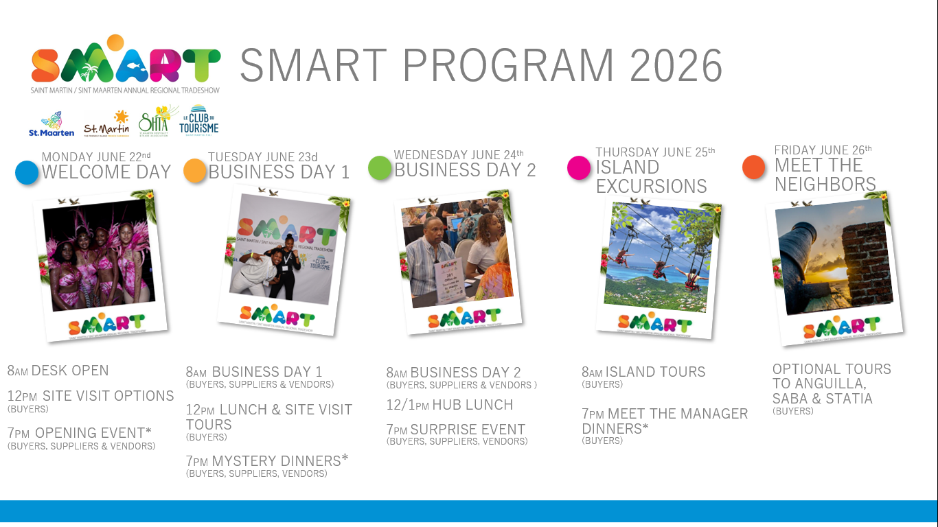 Save the Date for the 18th edition of the St. Maarten / St. Martin Annual Regional Tradeshow (SMART)!